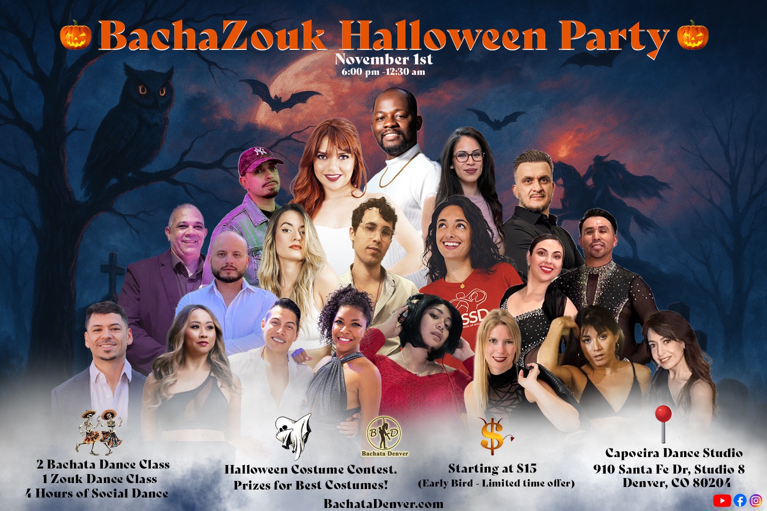 Denver, get ready for an unforgettable Halloween celebration! Weβre bringing together the Bachata & Zouk dance communities for a night full of classes, social dancing, costumes, and prizes. With 6 amazing instructors, three group classes (two Bachata, one Zouk), and four hours of social dancing with two DJsβone for Bachata and one for Zoukβthis is a night you wonβt want to miss!