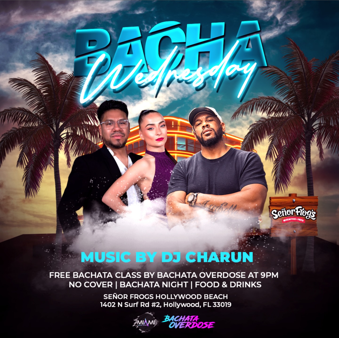 Step into the rhythm and passion of Bachata Night Wednesday! Join us for an unforgettable night of music, dance, and energy at Señor Frogs Hollywood Beach, right in the heart of Hollywood Beach.