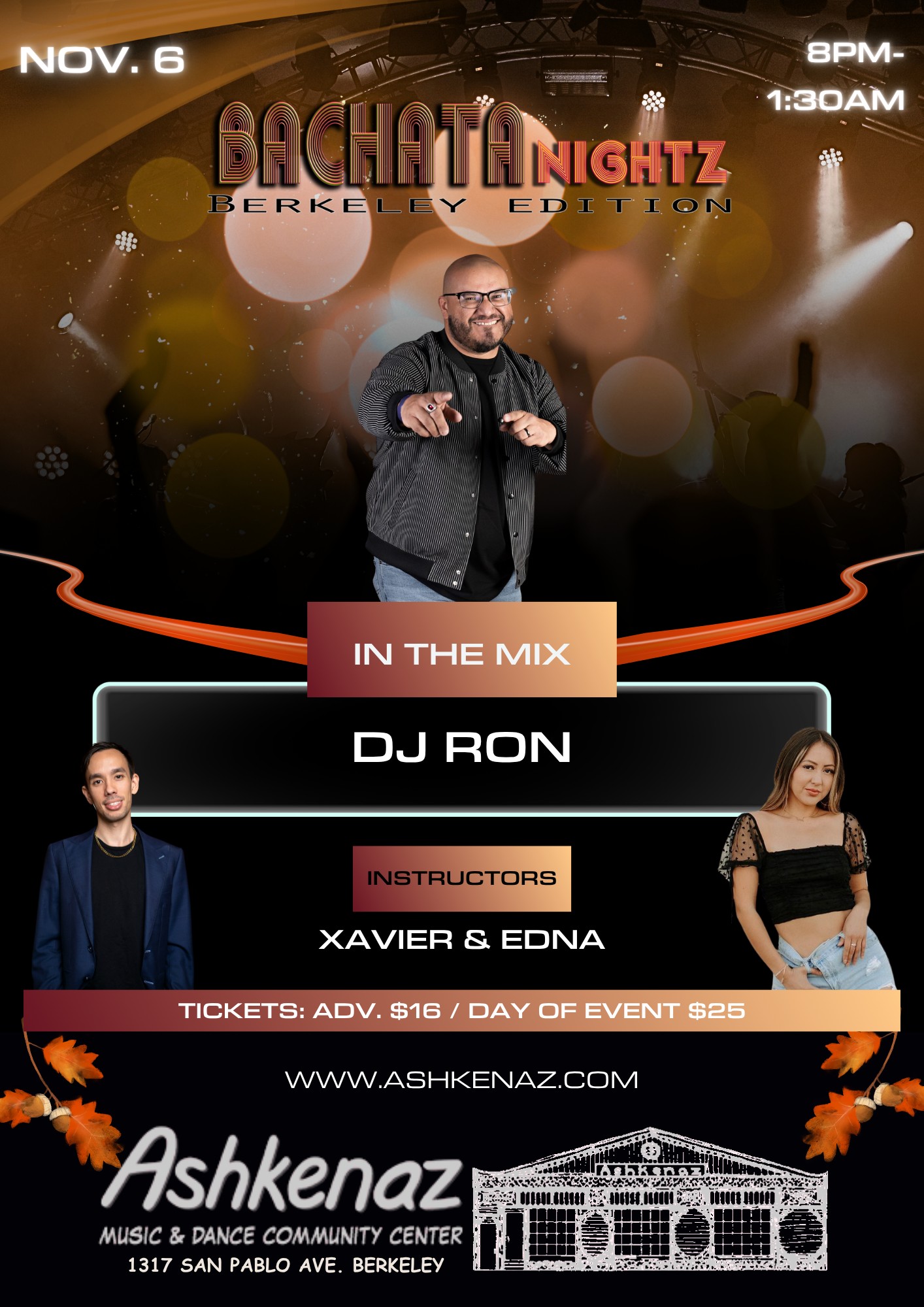 Advance Tickets $16 ( Advance Sales end Wed. Nov. 5 at 11:59pm )
