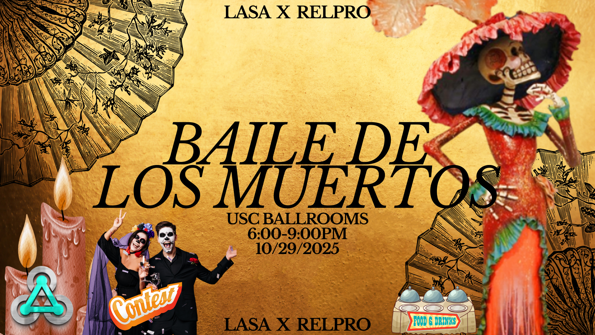 Join us for a special Halloween celebration in honor of Hispanic Heritage Month! The USF St. Pete Latin American Student Association (LASA) and RELPro Dance Promotions are teaming up to bring you the Baile de los Muertos on October 29th from 6 PM to 9 PM!