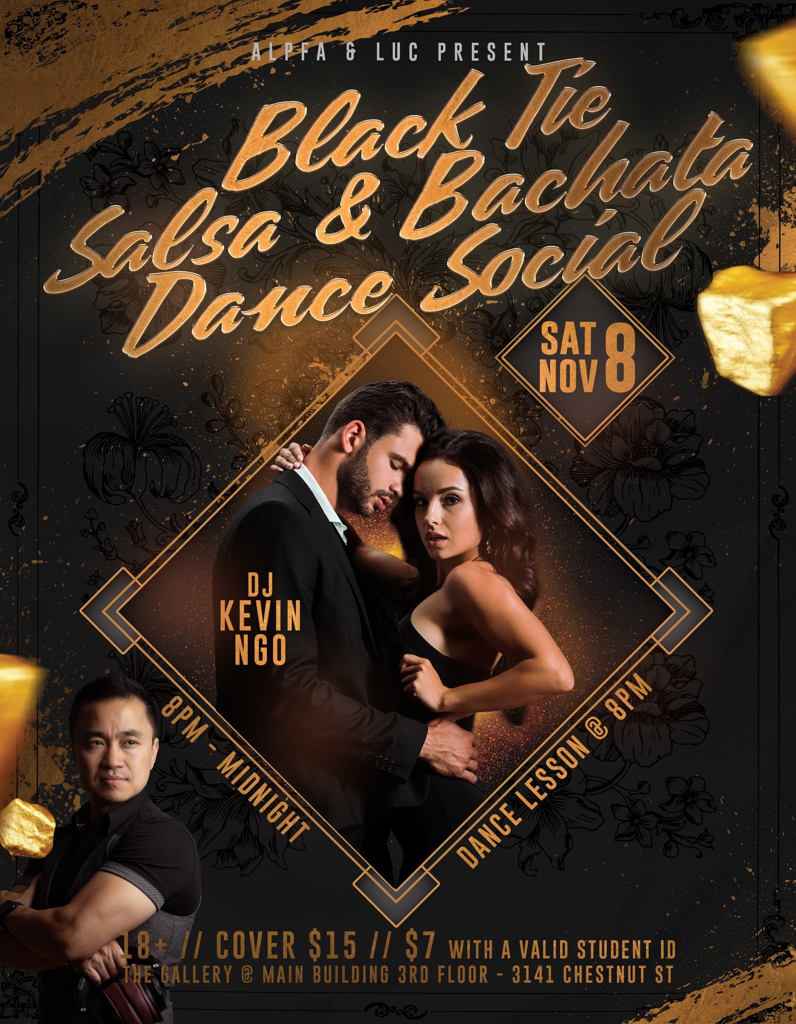 Join us at our Salsa Bachata Dance Social – meet new people, learn some dance moves and have a grand time for only $7 (with a valid student ID)
