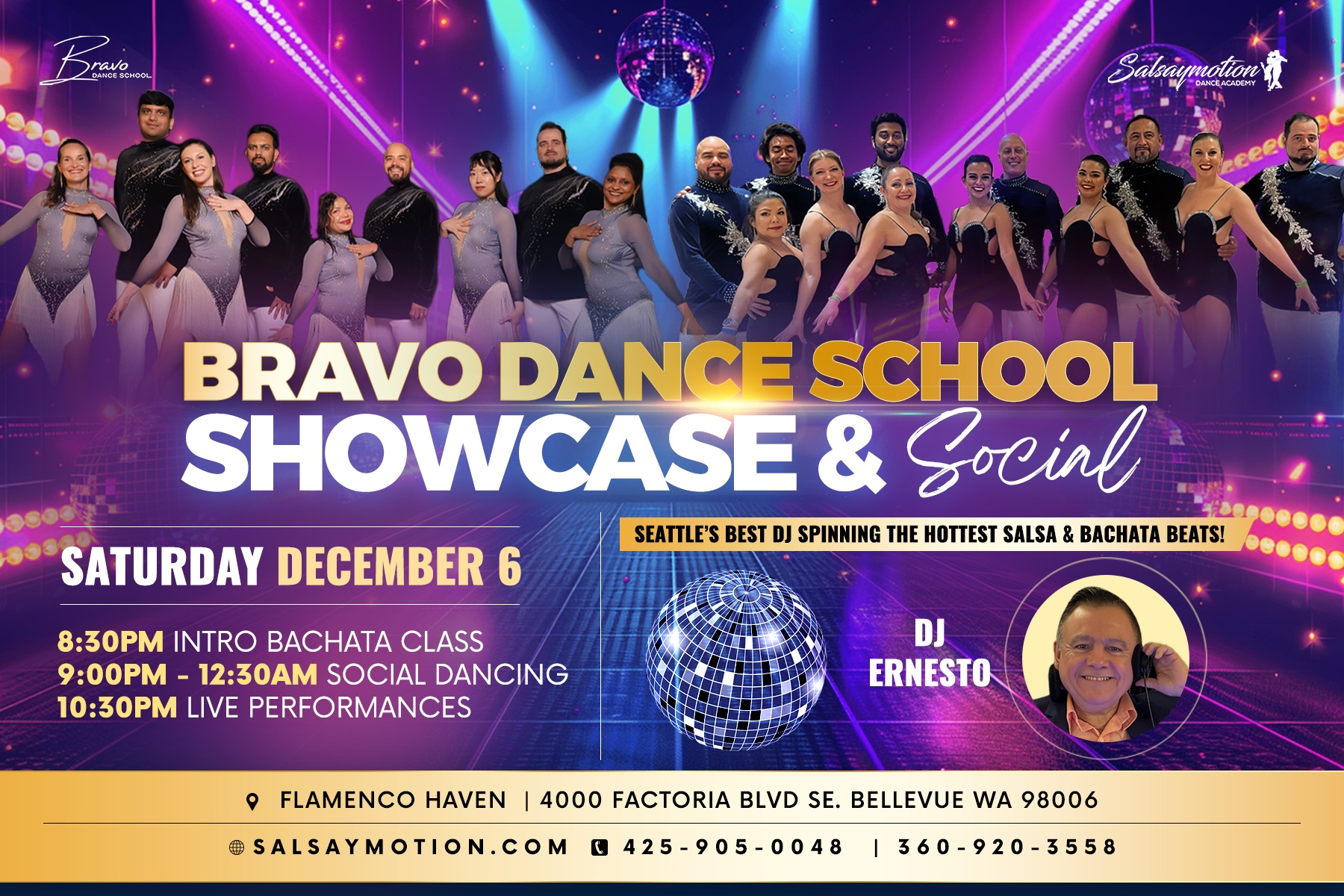 #BravoDanceSchool #DanceShowcase #SalsaSocial #BachataSocial #LatinDance #SeattleDancers #DanceCommunity