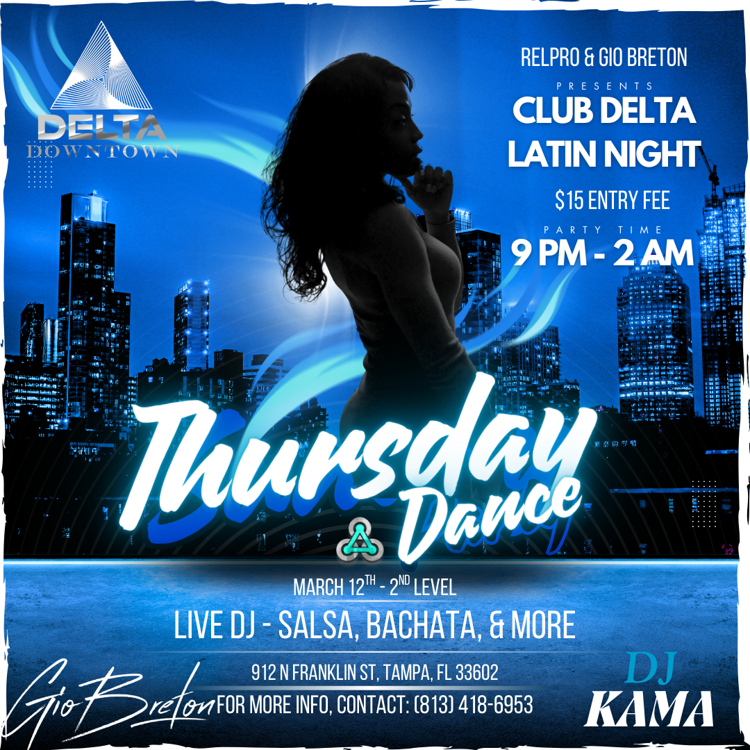#TampaLatinNight #SalsaTampa #BachataTampa #ClubDelta #DowntownTampa #RELProEvents #GioBreton #TampaNightlife #DanceTampa #FreeEntry #912Franklin