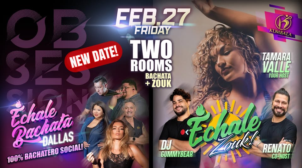 Mexico City, Austin, Montreal, Italy, and now Dallas! π Finally Echale Bachata is here for the ultimate experience, exclusively designed with social dancers in mind. Featuring one dedicated room of 100% Bachata and NOW ZOUK! β€οΈ This event creates a festival-like atmosphere thatβs perfect for both seasoned dancers and beginners. Immerse yourself in our vibrant Latin Dance community and join us for an unforgettable night!