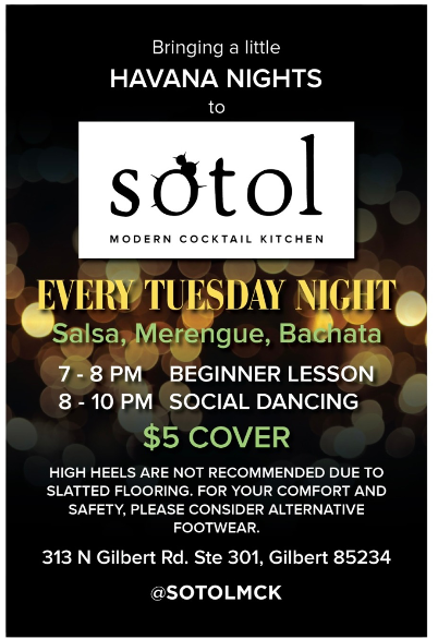 1 hour beginner lesson followed by 2 hours of social dancing. The beginner lesson will include a mix of Salsa, Bachata, and Merengue.