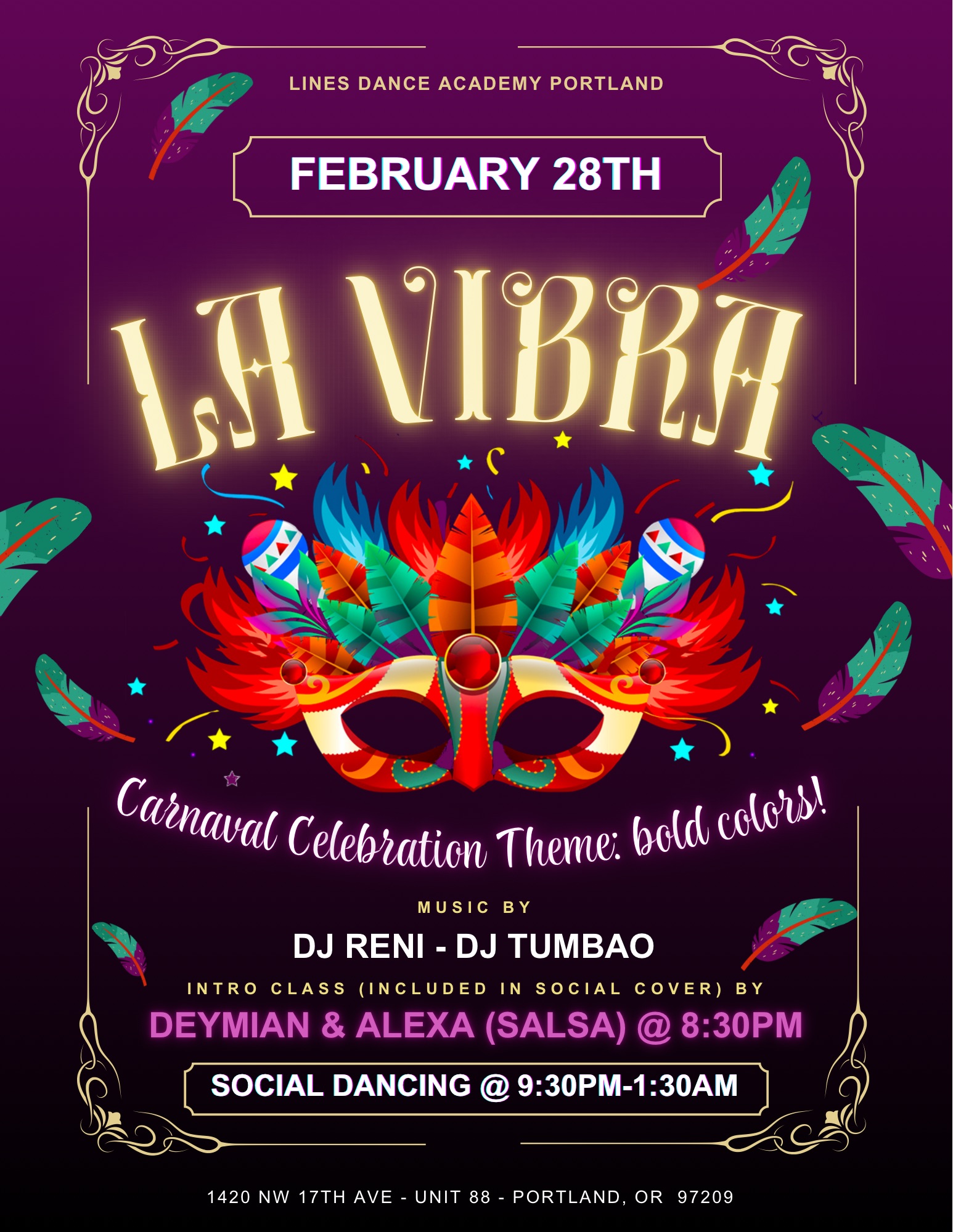β’ Social Dancing: 9:30 PM β 1:30 AM