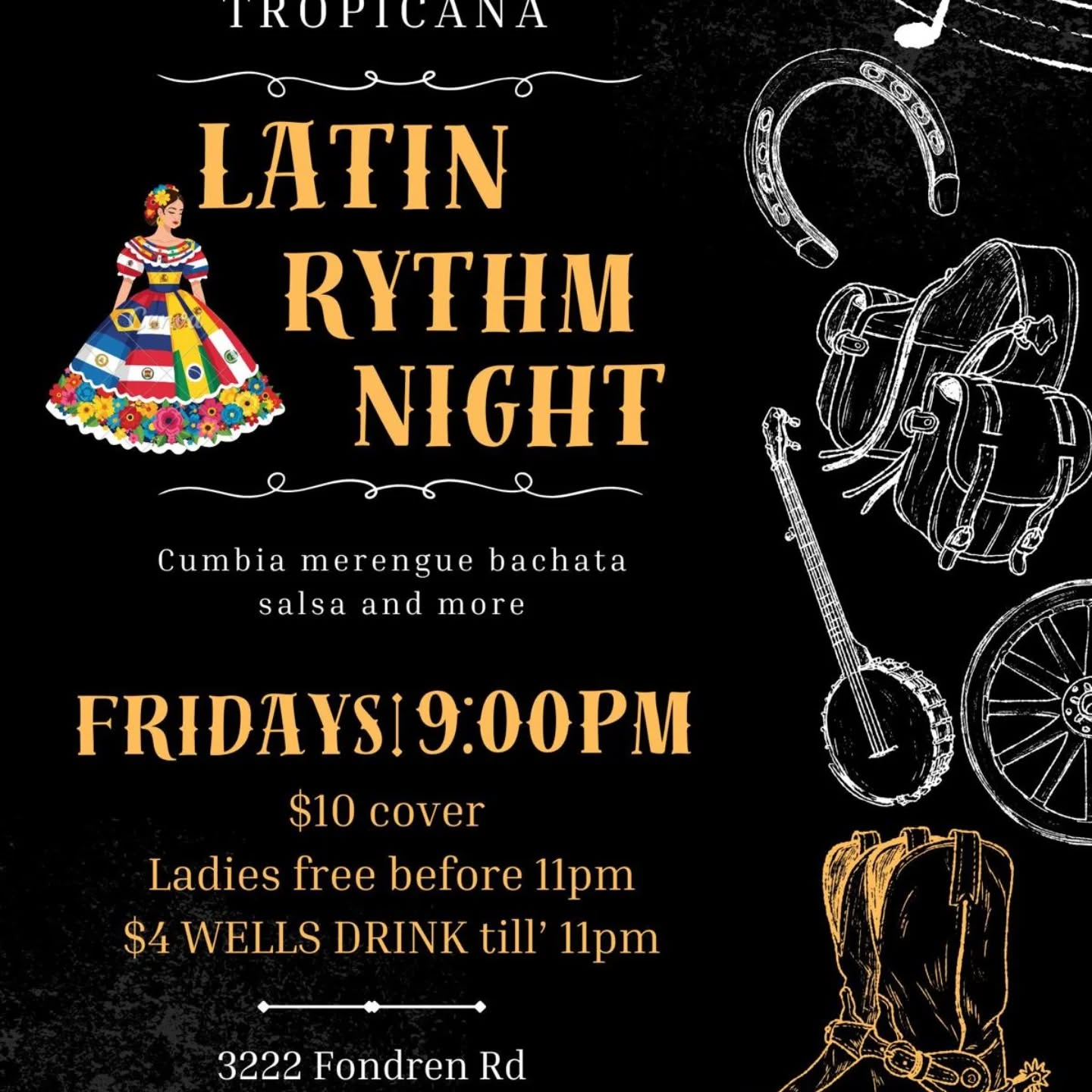 Club Tropicana : Live music by guest bands with Salsa, Bachata, Cumbia, Merengue. JC Sounds in the mix .