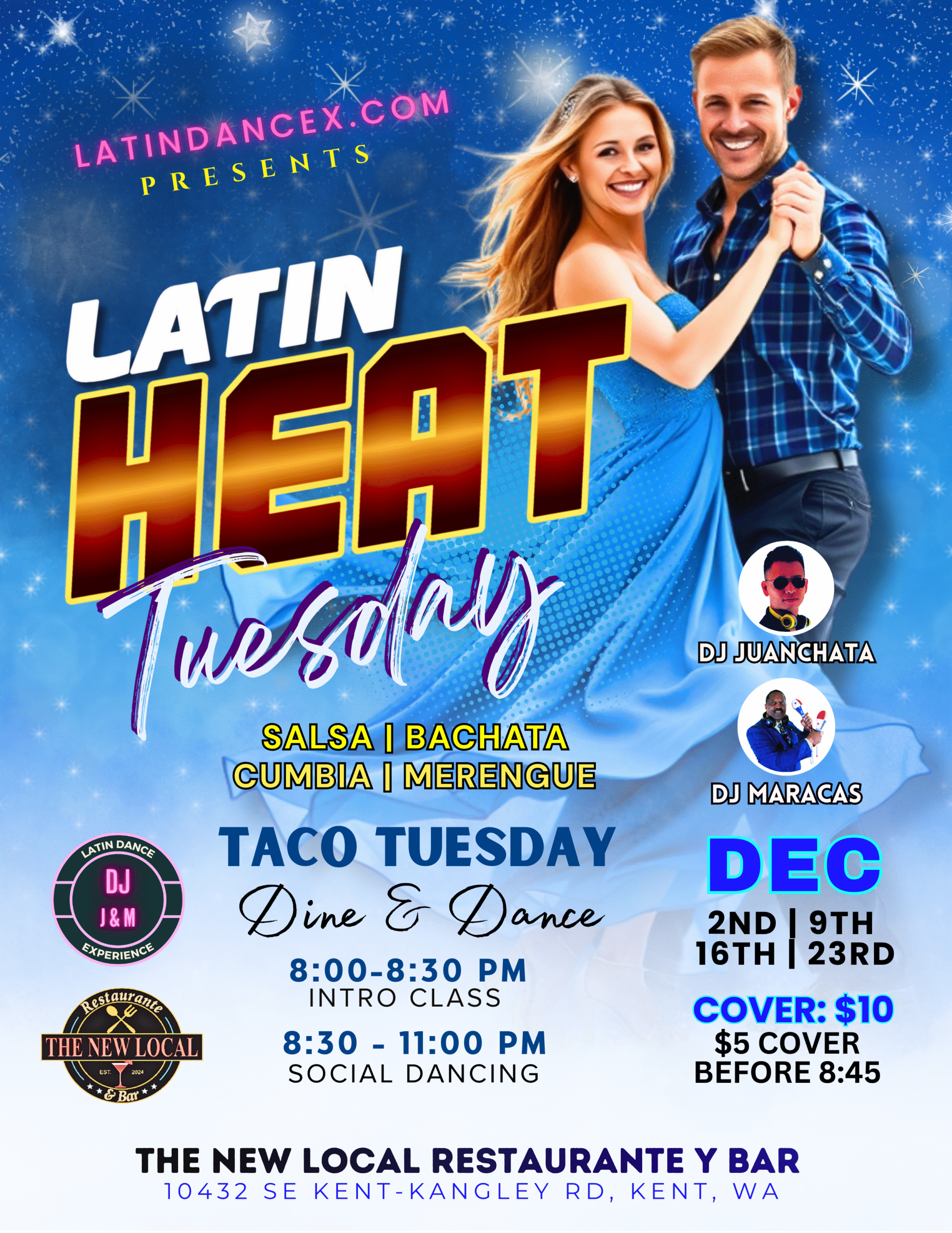 LATIN HEAT TUESDAYS + TACO TUESDAY DINE & DANCE with SPECIAL FOOD PROMO