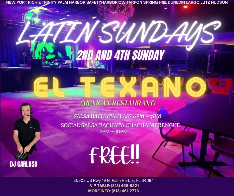 πŸ“ Where: El Texano (35903 US Hwy 19 N, Palm Harbor, FL) ⏰ When: 2nd & 4th Sundays | 6 PM – 10 PM πŸ“ž VIP Tables: (813) 458-6321
