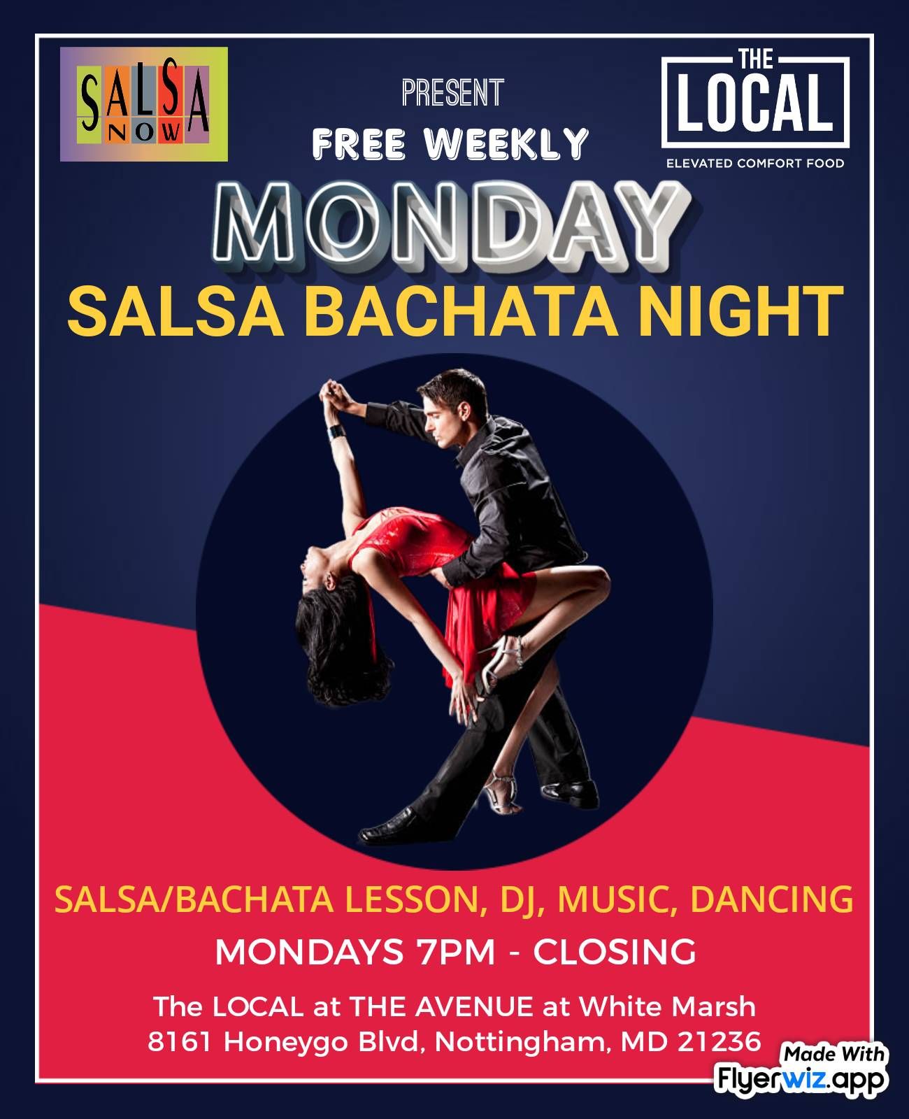 A fun Salsa and Bachata Night is now held weekly in Baltimore County at The Local on The Avenue in White Marsh! Come and enjoy an evening of delicious cuisine and libations, vibrant music, lessons, and fun dancing. Complimentary admission, happy hour specials, free parking, and an awesome atmosphere. Everyone is welcome!