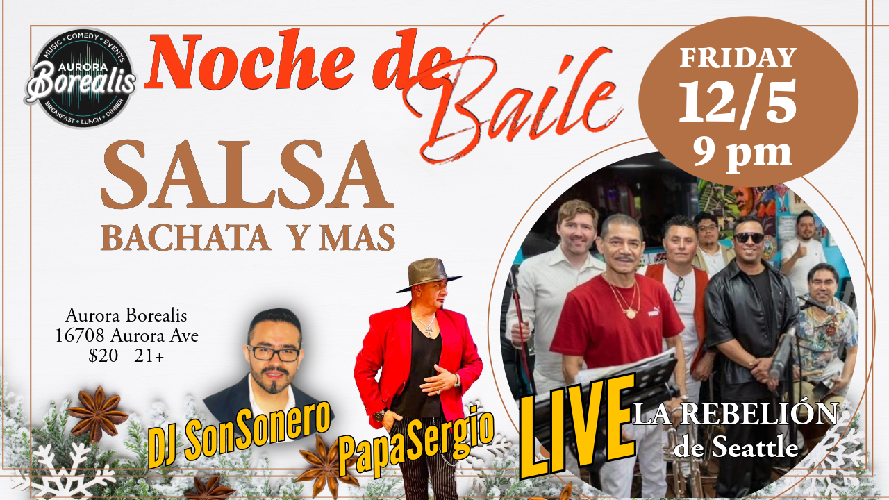 Get ready to party! La Rebelión de Seattle is bringing the live heat, and DJ SonSonero will be spinning the best Salsa, Bachata, and more all night long.