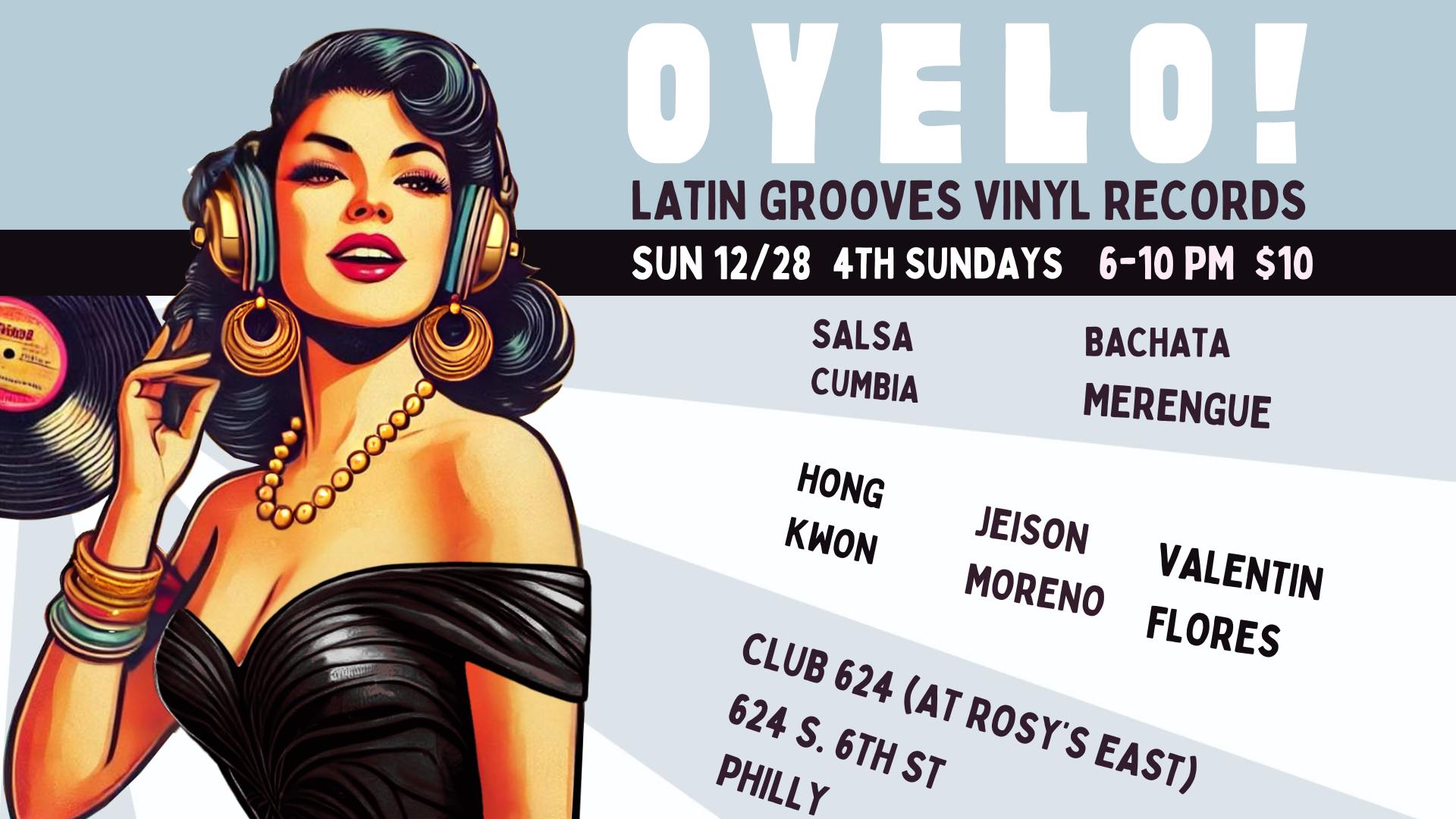 ** Holiday Party and Pre-New Years Oyelo – wear your favorite festive holiday attire, come dressed to the 9s, or come as you are! Let’s celebrate the end of 2025 and get ready for 2026 dancing to salsa, bachata, merengue and cumbia on vinyl records and CDs! **