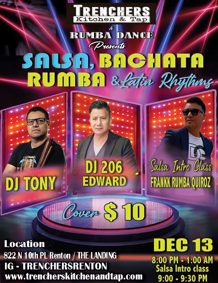 #SalsaNight #LatinDance #Rumba #Bachata #FreeEvent #RentonNightlife #TrenchersKitchenAndTap #RumbaDance #SaturdayPlans #DJParty #PNWEvents