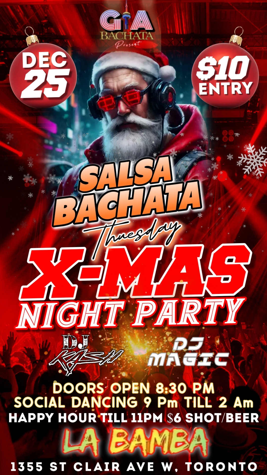 Get ready for a super festive Christmas Night party at La Bamba Lounge! π Iβm so excited to be celebrating with everyone. Expect good vibes, amazing company great music Salsa, Bachata and other latin hits later in the nigh by DjKash & Dj Magic π