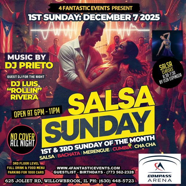 Whether you’re new to salsa or a seasoned dancer, Salsa Sundays @ Compass Arena is where Chicago’s Latin dance community comes alive!