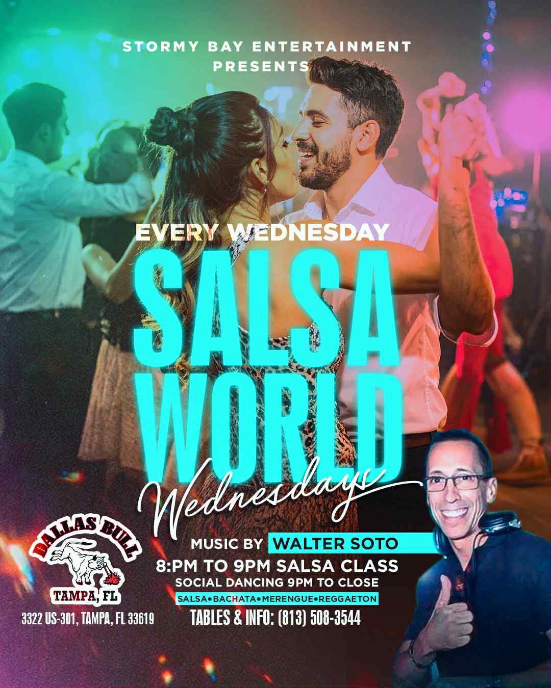 Salsa World Wednesdays ๐Ÿซ continues to light up your midweek, NOW AT the DALLAS BULL, Tampa!