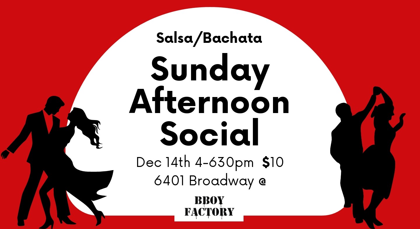 Come join us for our Sunday Afternoon 50/50 Salsa/Bachata dance social.