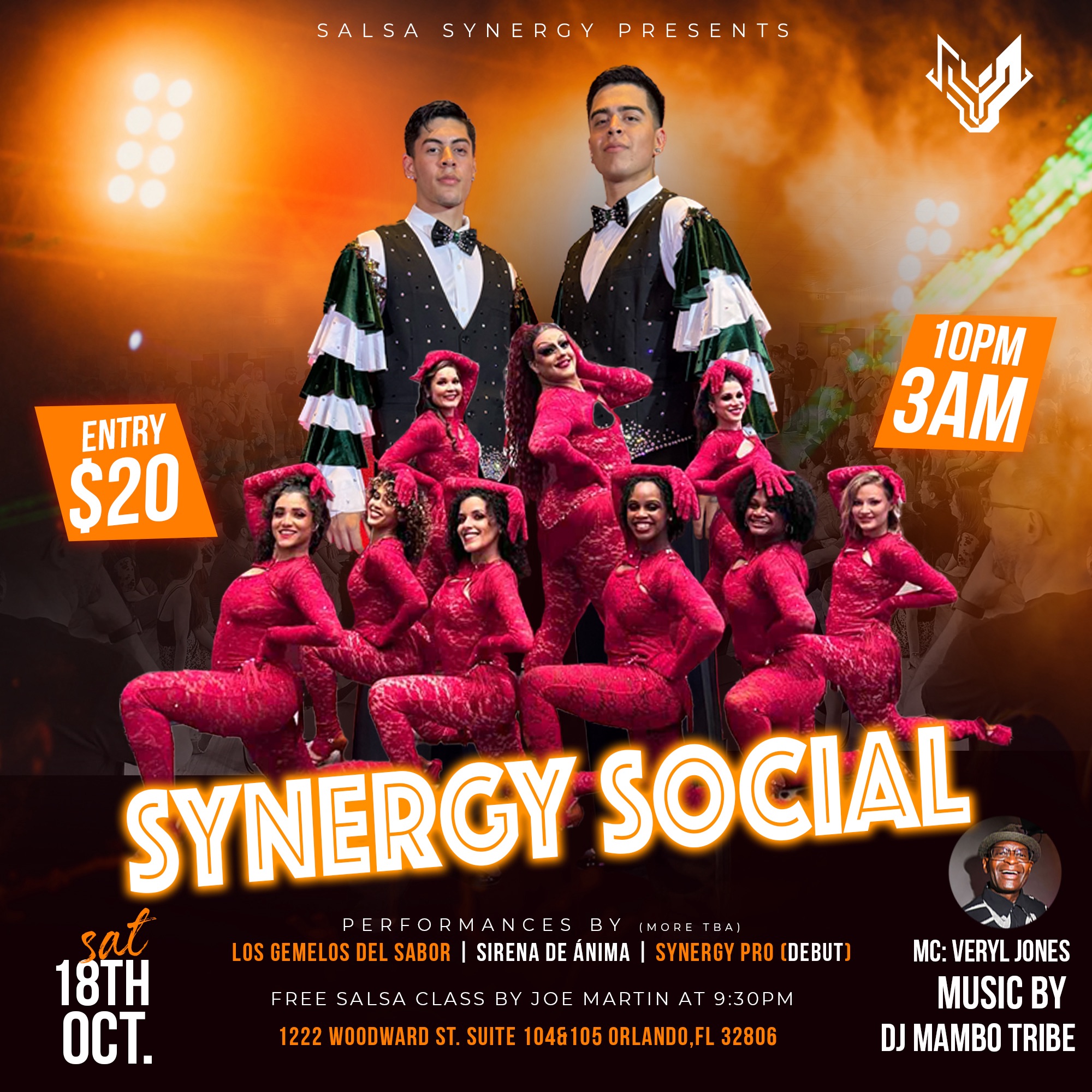 Celebrate our October social with special guests Las Sirenas de Anima & Los Gemelos De Sabor!!! We also have a special debut show by Synergy Pro which you don’t want to miss!!! 🔥🔥🔥🔥