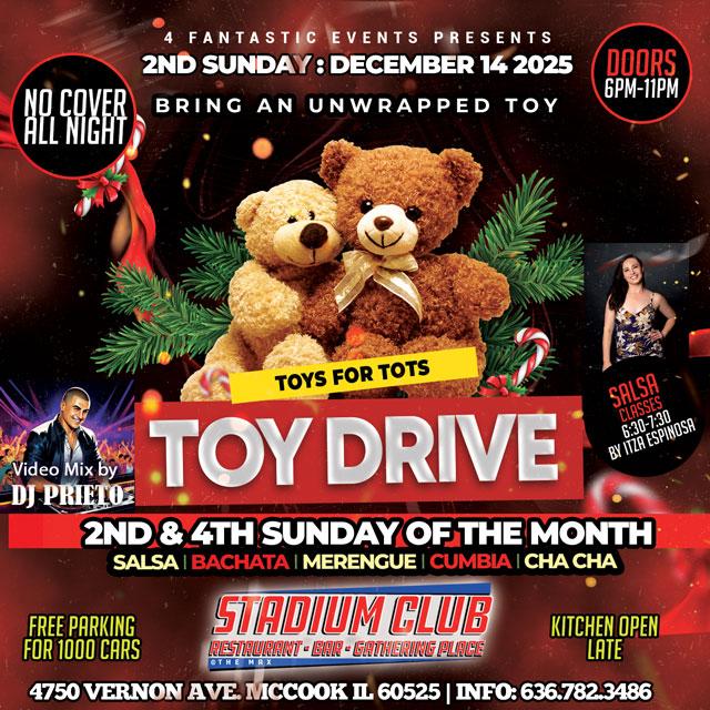 Weβre partnering with Toys for Tots to help bring joy to children this holiday season. Bring a new, unwrapped toy and dance the night away at The Stadium Club β where rhythm, community, and good vibes come together.