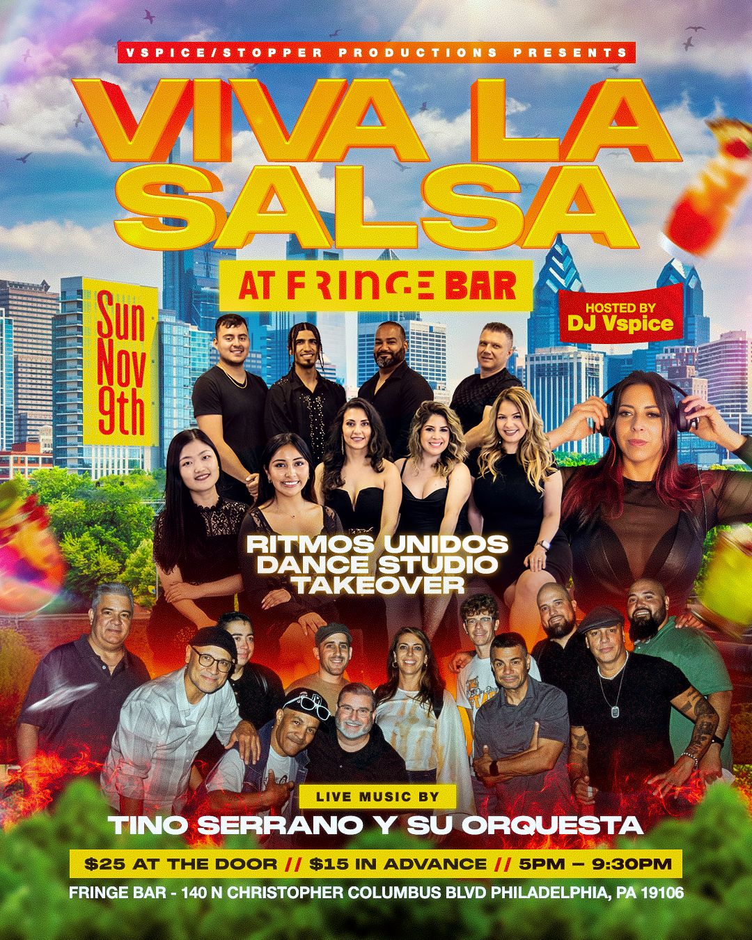 VIVA LA SALSA is a monthly live music and dance social at Fringe Bar! Join us for our RETURN to Fringe Bar on Sunday, November 9th for a very special date with RITMOS UNIDOS DANCE STUDIO!