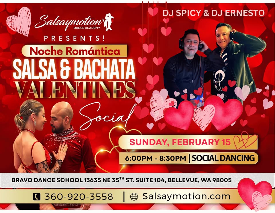 🌹 Noche Romántica: Salsa & Bachata Valentine’s Social 💃🕺 Join us for a night full of romance, rhythm, and dance! 📅 Sunday, February 15 🕕 6:00 PM – 8:30 PM 🎧 DJ Spicy & DJ Ernesto spinning the best Salsa & Bachata music to keep you moving all night. ✨ Whether you’re coming with a […]