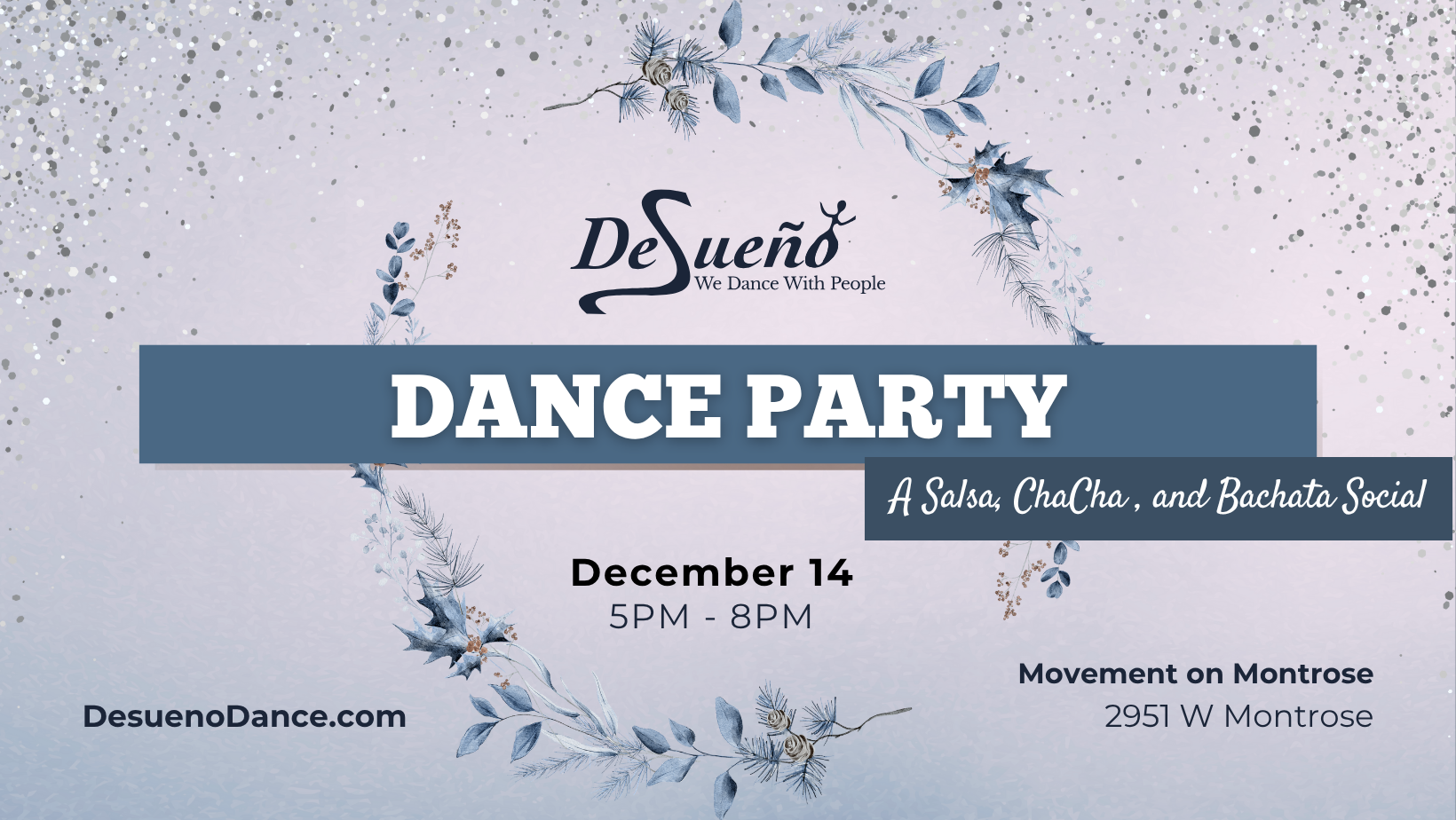 Movement on Montrose 2951 W Montrose Ave, Chicago, IL, United StatesDesueño Dance Party You’ll hear a mix of mostly Salsa sprinkled with your favorite Bachata and ChaCha music. Guest DJ: Carlos GuateDJ Performance: 2025 Fall Challenge Date: Sunday, December 14, […]