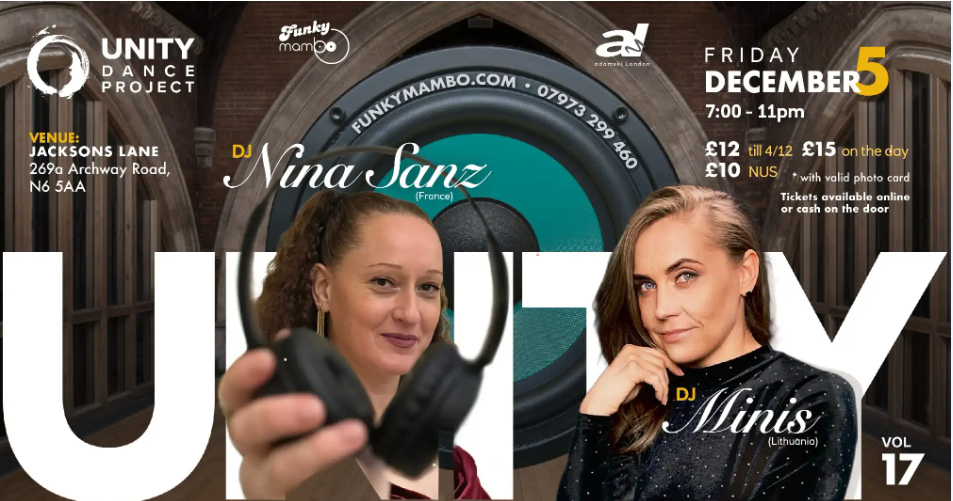 Jacksons Lane 269A Archway Road, London, United KingdomUnity returns hosted by Funky Mambo and Adamksi. 🔥 UNITY DANCE PROJECT Vol.17 – A Night of Salsa 🔥 A Night of Salsa – Xmas Vibes! featuring DJ Minis & […]