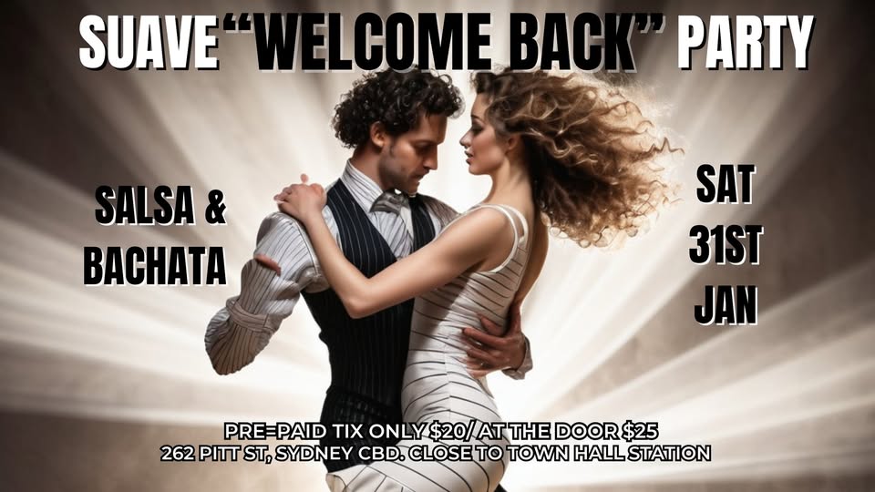Salsa Suave 262 Pitt St, Sydney, NSW, AustraliaSuave "Welcome Back" Party Salsa & Bachata Dancing in the city! Saturday 31st January 2026. Welcome back to classes Suave Party Come and get a great night of Salsa & […]