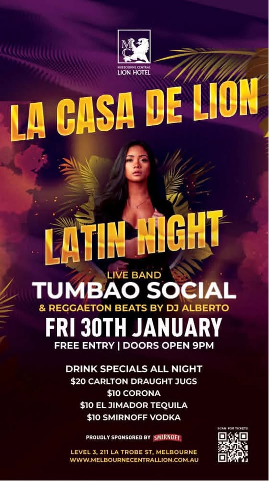 WELCOME BACK 2026! - LA CASA DE LiON Melbourne Central Lion Hotel – Level 3 🗓️ Date: Friday 30th of January 2026 ⏰ From 9 PM till 3AM 🎟️ FREE ENTRY Get ready Melbourne, we’re bringing the hottest Latin party to the heart of the city! Live Salsa band ** TUMBAO SOCIAL ** 🎧 DJ […]