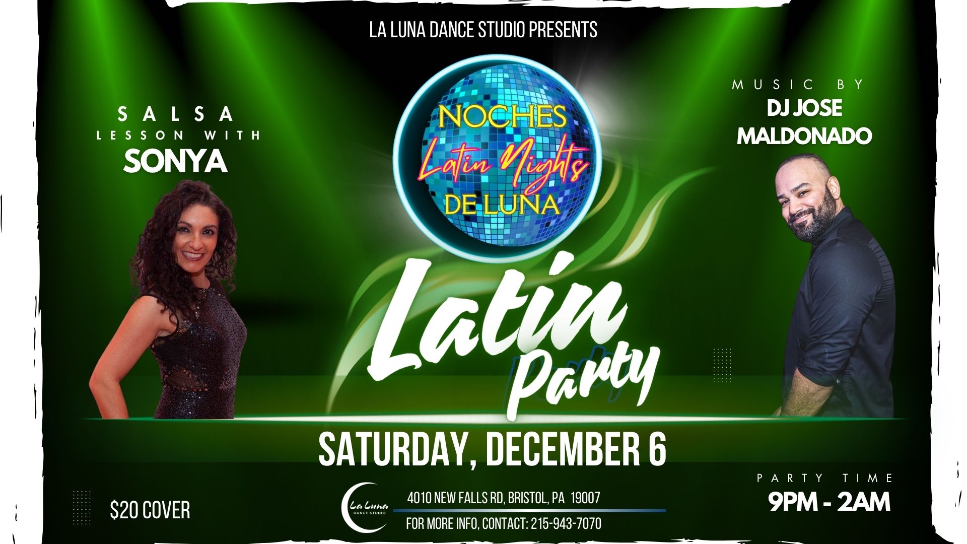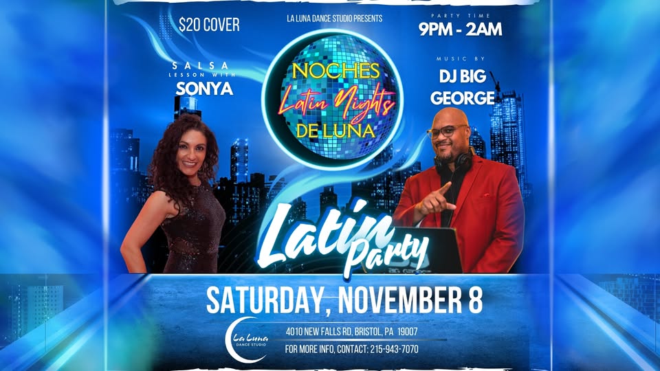 La Luna Dance Studio 4010 New Falls Rd, Bristol, PA, United StatesNOCHES DE LUNA 💃🌙 Saturday, December 6, 2025 Jesse Ballroom (larger ballroom) 9:00pm-Doors Open, dinner Buffet 9:15pm- Salsa Lesson with Sonya 10:00pm-2:00am Latin Music & Dancing by DJ Jose Maldonado $20 cover at the door includes: -Dance lesson -Dinner buffet -Free parking -🍸Cash bar We accept cash, credit cards, or Venmo. La Luna Dance Studio […]