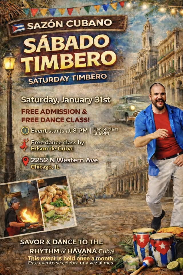 Sábado Timbero January 31 @ 8:00 pm - 11:00 pm Sazon Cubano 2.0 2252 N Western Ave, Chicago, IL, United States Dance and music all night.