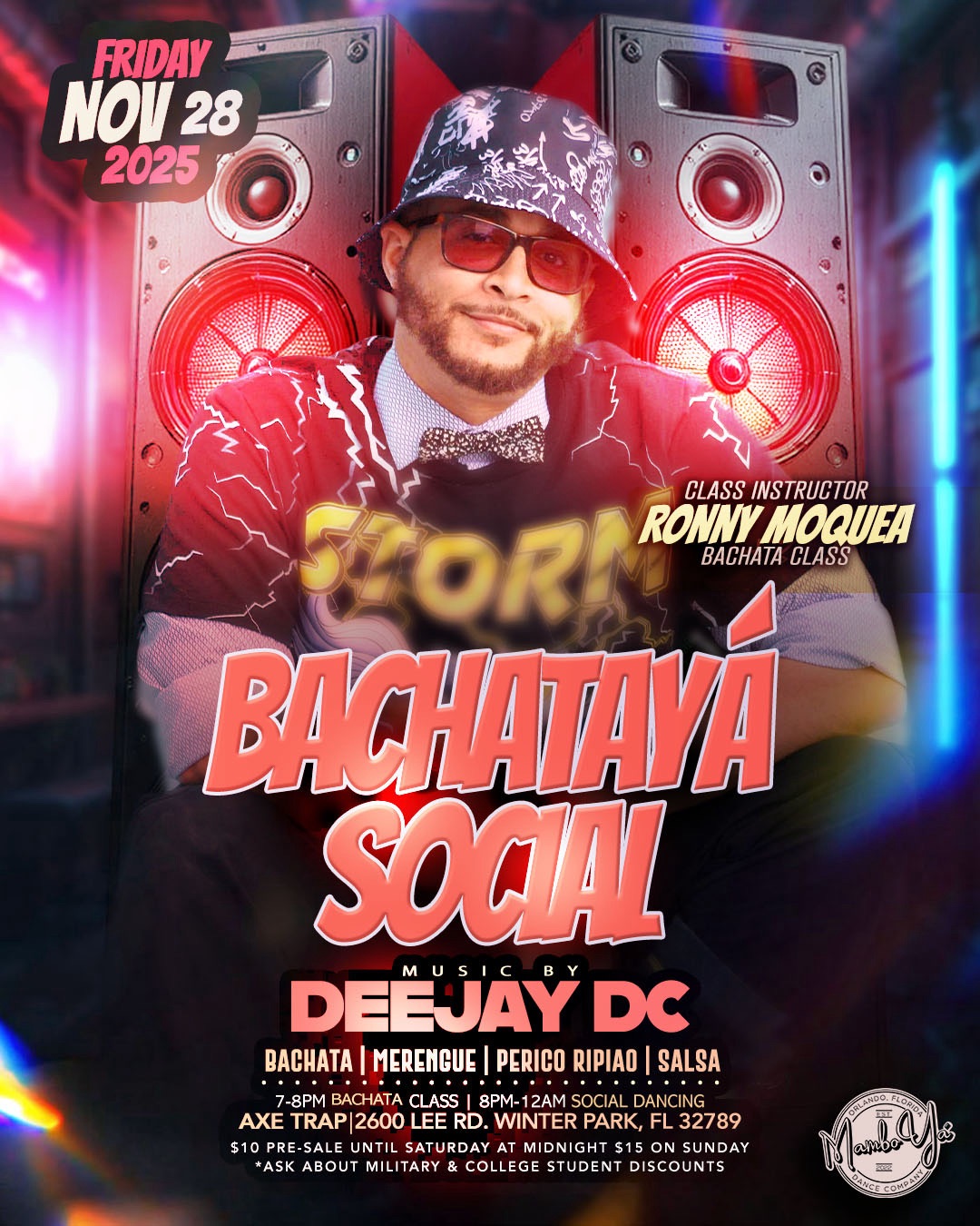 The Trap 2600 Lee Rd, Winter Park, FL, United StatesMamboYa Social Salsa | Bachata | Cha Cha Cha When: Sunday Salsa Class 5-6pm Social Dancing 6-10pm ⭐️Special Performances: TBD Top DJs will be spinning the best Salsa, Bachata & Cha Cha Cha from 6-10pm Where: The Axe Trap - 2600 Lee Rd, Winter Park, FL 32789 Entrance $15 | $10 with Student ID **Cash […]
